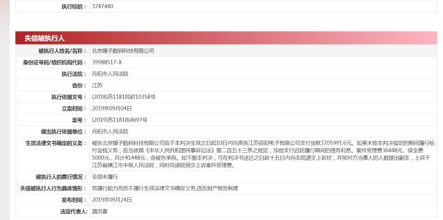 4、最后贴一下本案被执行人的信息查询截图,本案的被执行人是锤子科技,金额四百万左右: