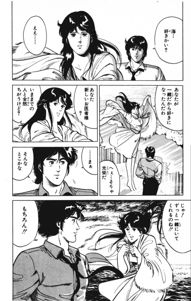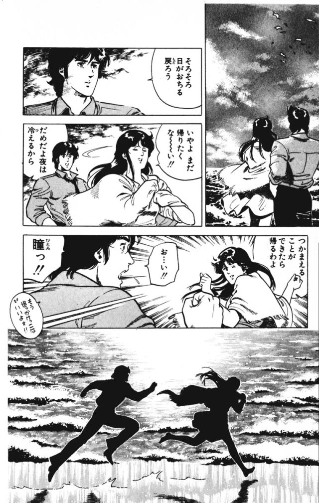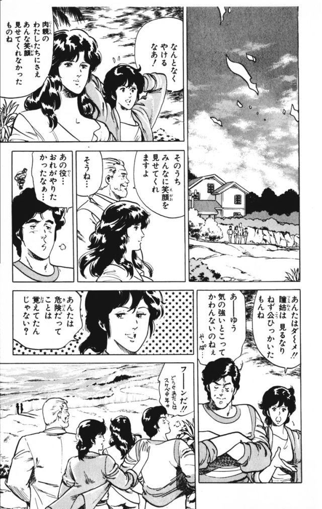 如果一个不幸的朋友在 1980 年代看完这部漫画以后破口大骂作者坑爹,并且没活到 2010 年代的话,那么他大概率是带着对北条司的无穷怨念离开这个世界的,仅有的安慰大概也只剩下“夕阳追逐战中有一个婚戒的特写镜头暗示小瞳听完海之曲已经恢复记忆”了,不过好在,我们这批年轻人等得起,比如说……等着某个见鬼的陈年旧物在 25 年以后面目全非地复活,把故事交代完毕。