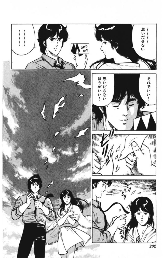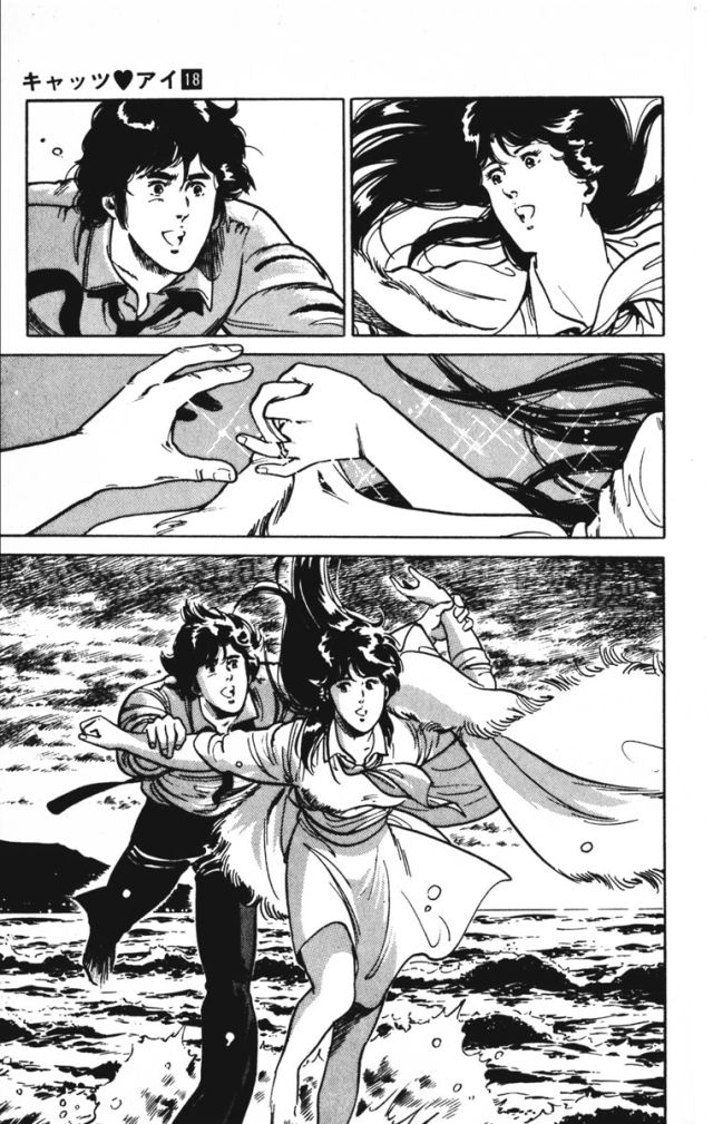 2、当初作为杂志连载版结局的是 18 卷的倒数第二章,也就是俊夫在机场把戒指丢给小瞳,两个人带着幸福和希望暂时分开,故事完;然后过了两三个月,北条司在杂志上补了个后日谈,就是我们现在看到的失忆 + 夕阳下的追逃了……请试想一下一个读者如果没察觉小瞳在最后其实已经恢复记忆,那他当时读完这篇后日谈是啥感受(