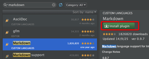 搜索 markdown 关键字,如果您的编辑没有,会显示找不到的提示,然后点击 “browse” 链接,查找插件库: