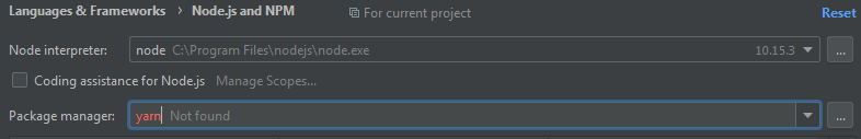 今天在家里同步github上面的代码时候,需要安装依赖,但是在webstorm里面提示yarn not found。