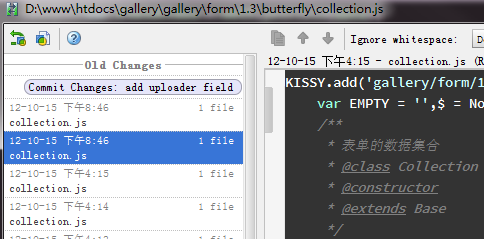 代码编写界面左侧,可以看到当前工作目录代码与最近版本库代码的差异。
