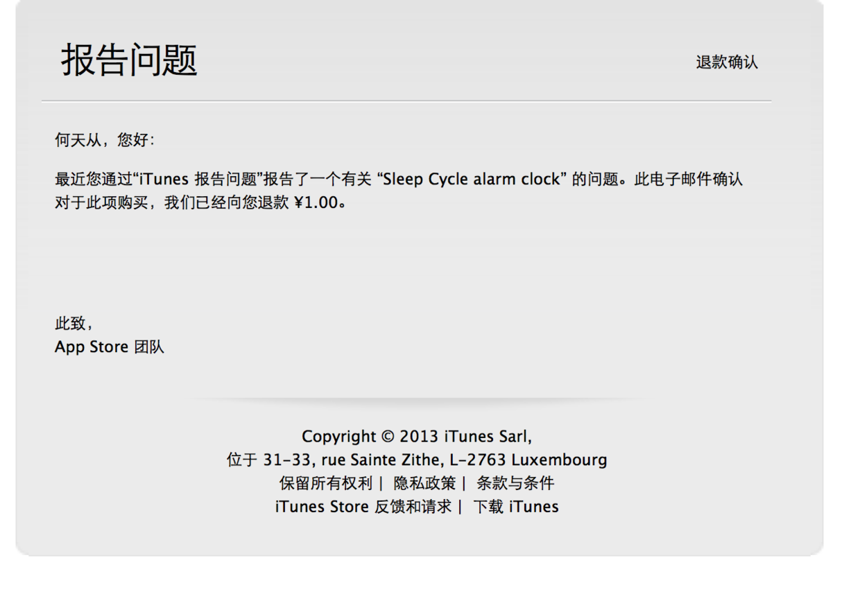 6.退款成功后,苹果还会发邮件告诉你(苹果真的是全心为用户!赞一个!)