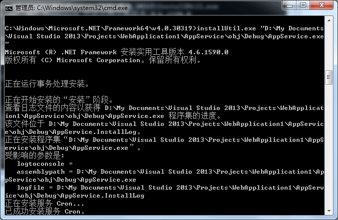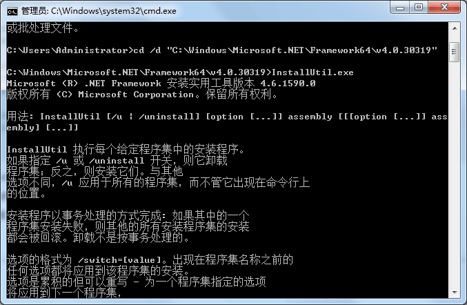 InstallUtil.exe的所在目录是:C:\Windows\Microsoft.NET\Framework64\v4.0.30319