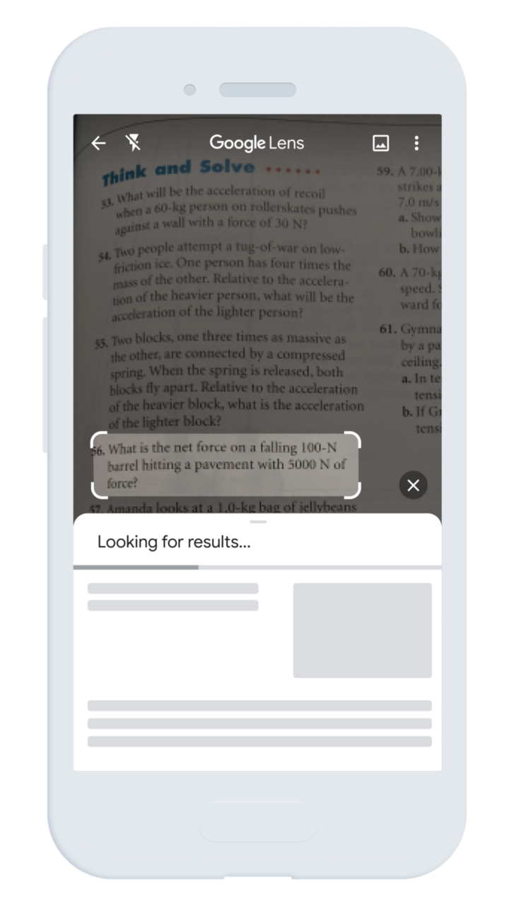 Google Lens显示了一个灰色的 "骨架 "UI,表明正在加载的内容。