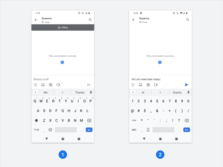 并非所有的用户都知道要看状态栏上的飞行模式、Wi-Fi信号和移动数据关闭图标,以了解他们是否在线。对于一些用户来说,这些图标太小了。为了让用户明白,可以考虑在应用程序用户界面中明确说明连接状态。