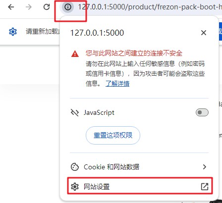 我们找到 Chrome 浏览器网址哪里,找到感叹号,点击感叹号,会出现网站设置,我们点击网站设置,截图如下: