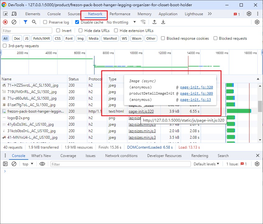 我又看了一下 Chrome 浏览器 Network 页面页面的瀑布流,查看到第二次请求的调用,是从 page-init.js 文件的 320 行产生的,截图如下: