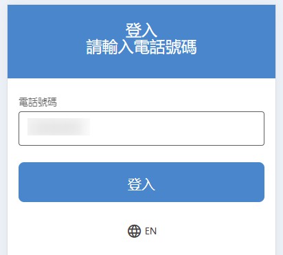 我们打开此页面之后输入香港电话号码,点击登入截图如下: