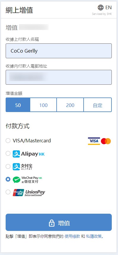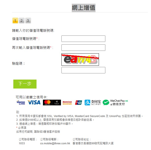 现在我们需要给香港和记电讯 3HK 吱游卡储值,可以在此储值:網上增值