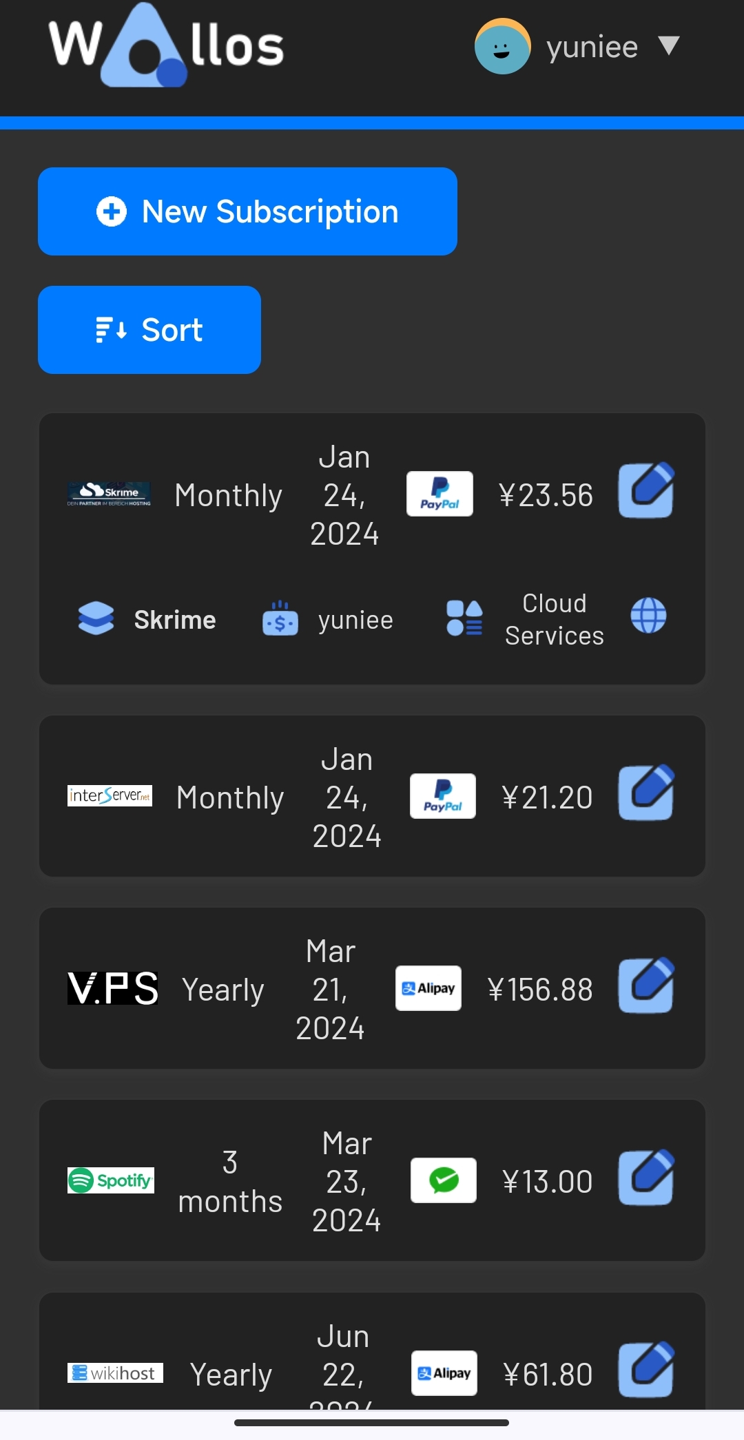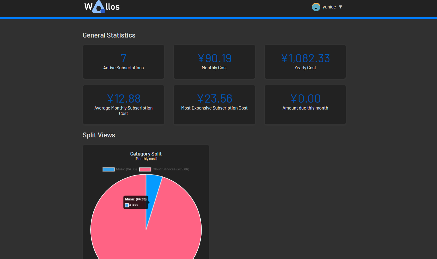 平时订阅了许多流媒体,也买了很多vps,但想知道自己一年在这些东西上花多少钱很麻烦,总想找一个能帮我们统计这些订阅制费用的软件,好让我们心中有数。有人用notion或excel等来统计自己在这些订阅制产品上的花费,但个人感觉还是有些不方便和简陋。之前在微信中使用过一个叫做“有数鸟”的订阅制管理小程序,可以管理比如Netflix,spotify或爱奇艺等流媒体的计费,但毕竟是在微信公众号中,自己感觉不方便。并且图标仅限于这些流媒体。后来也放弃使用了。接着在GitHub上发现了Wallos这个项目,开源且可以自托管,使用起来稍微安心和方便一些。