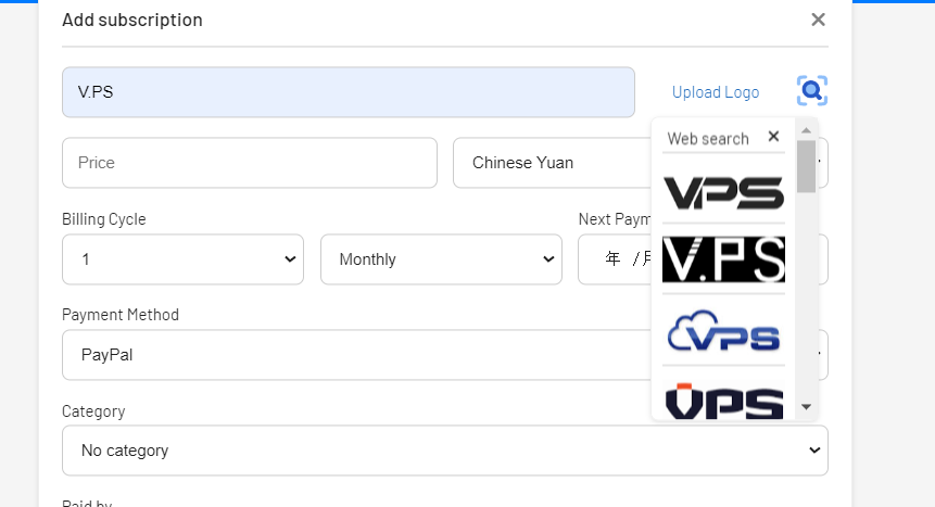 徽标搜索: 如果没有可供上传,则Wallos可以在网络上搜索您订阅服务的徽标图案.