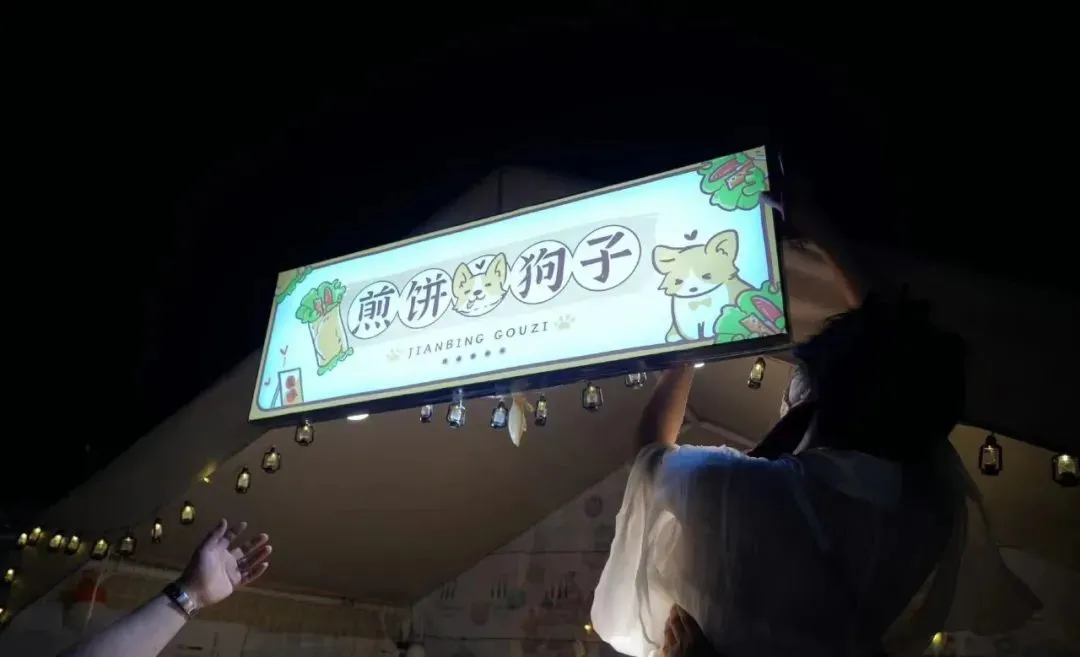 这片商业广场已经开业了十多年,直到“煎饼狗子”进驻,才一扫萧条之景——煎饼摊招牌一挂,“狗头萝莉来宁波”的消息就传遍了网络。“狗头萝莉”的线上流量迅速流到线下,涌向本地人印象里已经没落很久的夜市。几乎无人的小街一瞬间被塞满,夜市每晚人流汹涌。