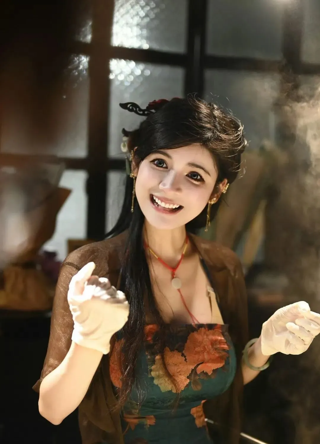 网友探店拍下她摊饼的视频,很容易点赞过万。视频里,她穿着紧紧裹住身体的店服、汉服或旗袍,画着精致的妆容,微笑、摊饼、合影。她像小狗一样略带无辜地瞪大眼睛,用夹子音送别光顾的客人们: