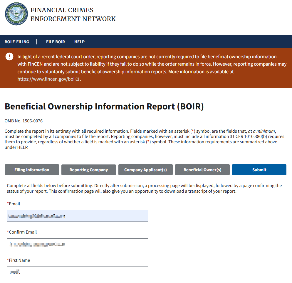 美国公司 BOI 信息披露申报