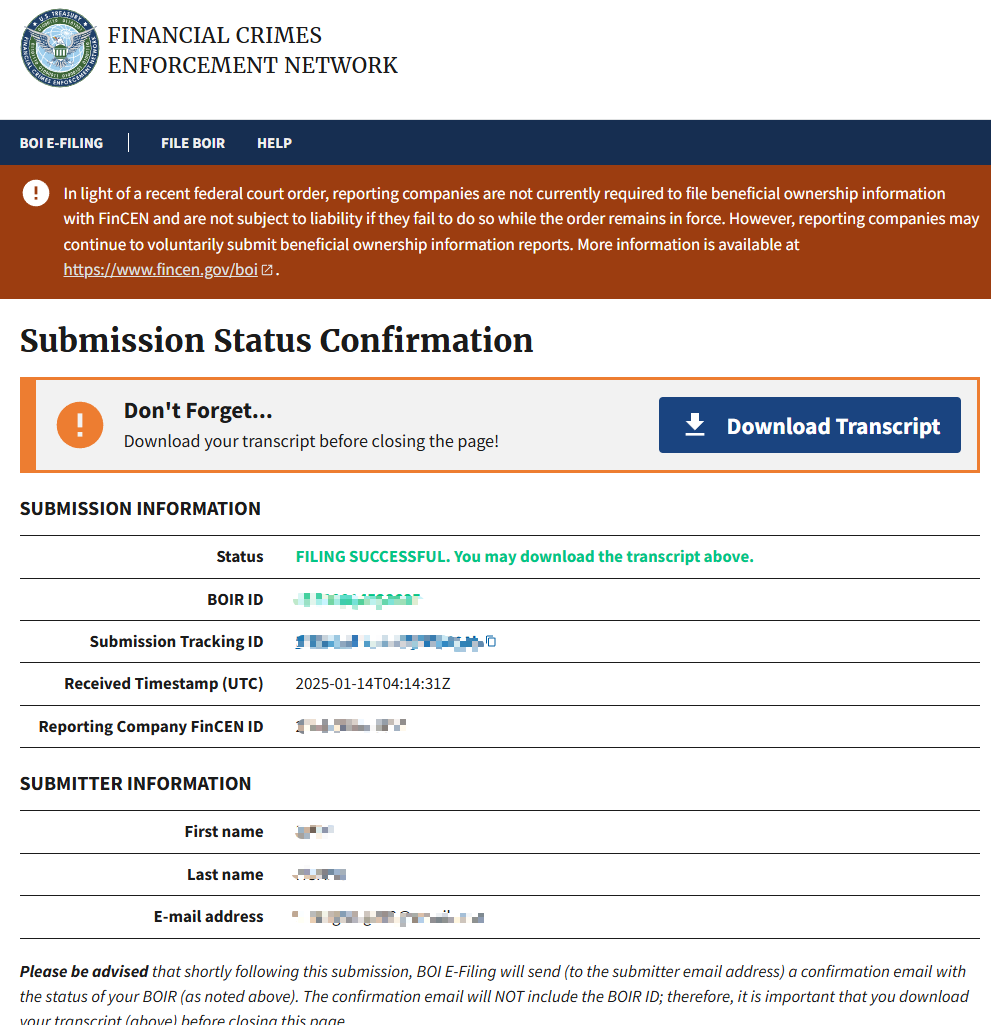 申报简单、安全且免费。 受益所有权信息不需要每年申报。 除非公司需要更新或更正信息,否则只需申报一次。