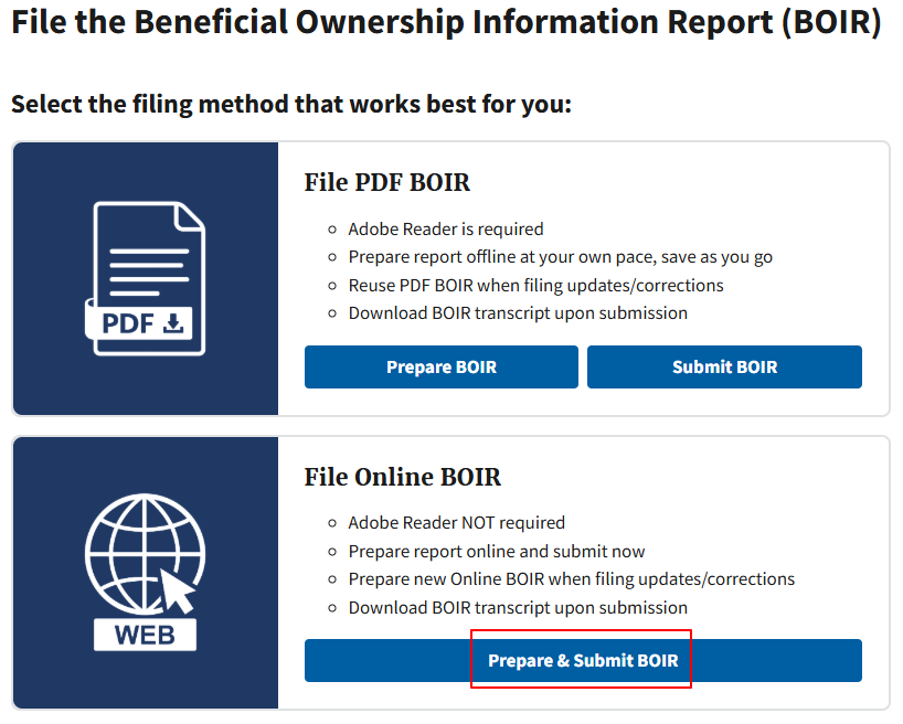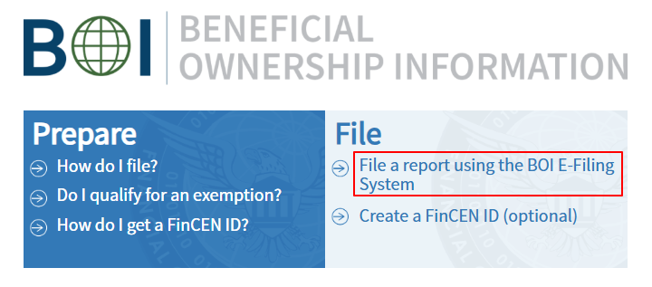 打开 BOI 申报页面,由于我们是第一次申报,我们选择 File a report using the BOI E-Filing System: