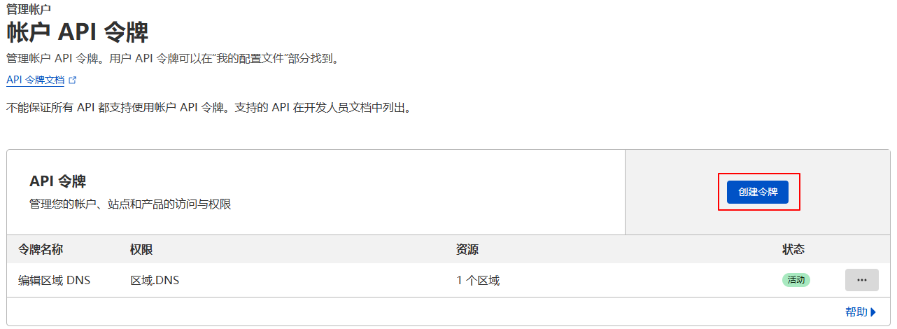 点击创建令牌,我们就可以获取该域名的 API 令牌了。