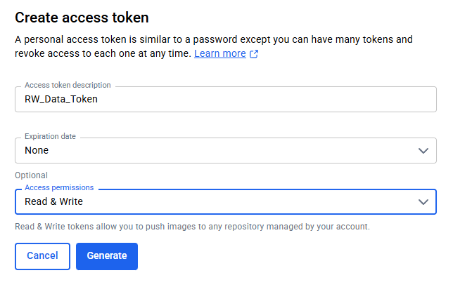 建好了会给我们一个 Token 值,我们直接填写到 GitHub 的 DOCKERHUB_TOKEN