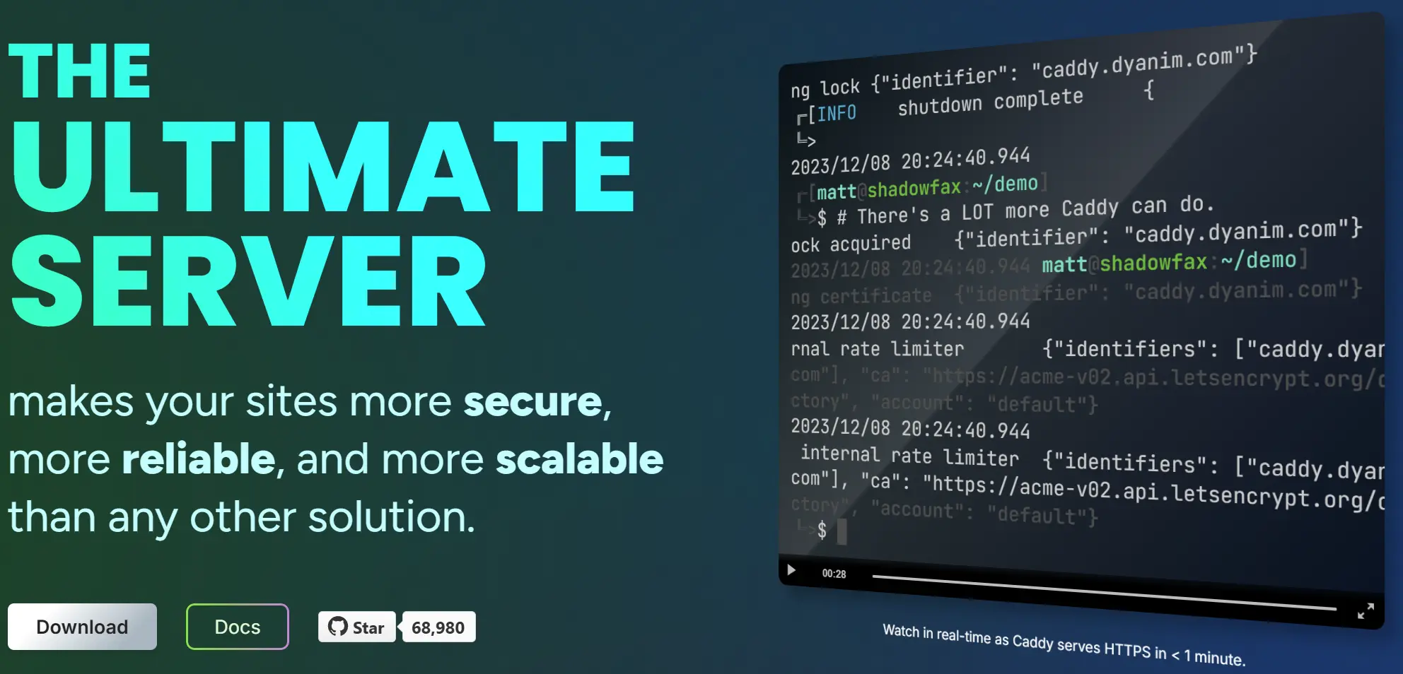 Caddy 不仅仅是一个 Web 服务器。例如,只需以下配置即可获取和续订一组域名的证书。
