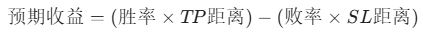 在量化建模中,TP 和 SL 必须成对出现。一个经典的量化公式是: