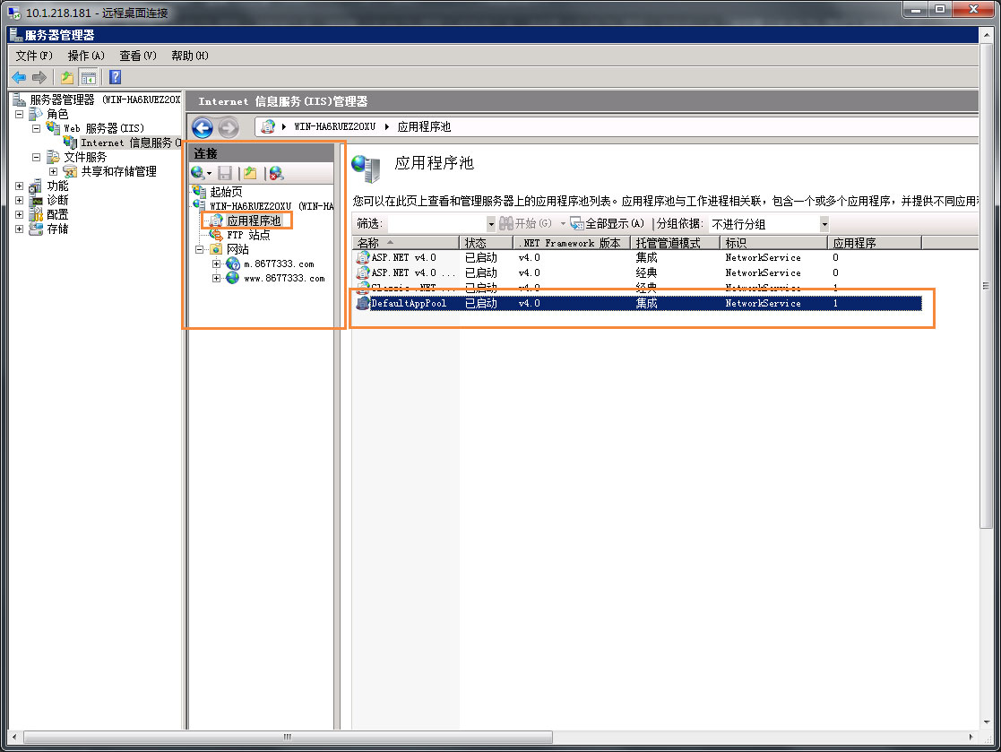4、查看刚才建网站所用的应用程序池,更改应用程序池配置: