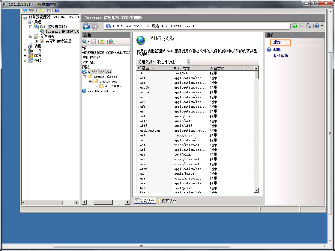 3、添加MIME类型: