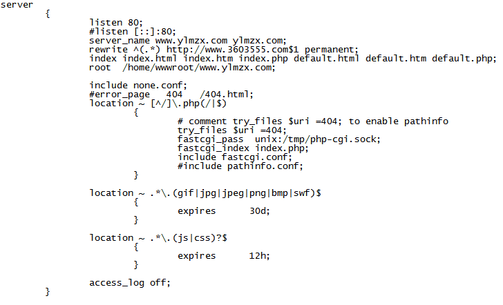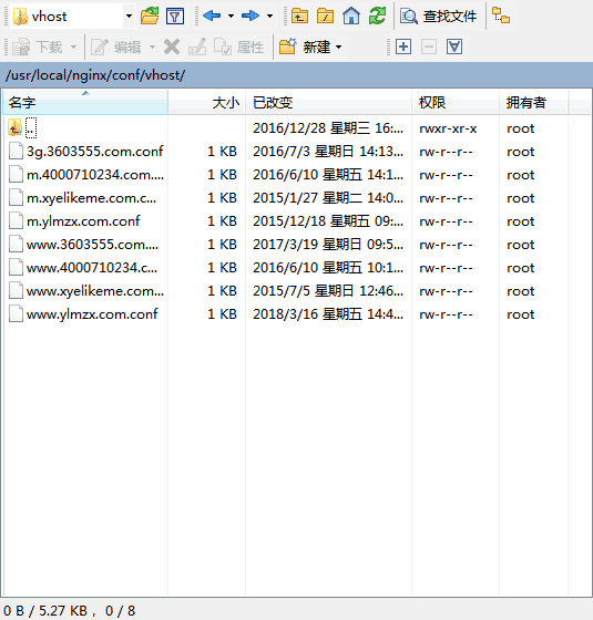 /usr/local/nginx/conf/vhost路径,因为这台服务器采用的vhost,所以这需要在每个域名目录编辑conf文件,如图所示:。 - 之后编辑需要跳转的conf文件,实例代码如下: