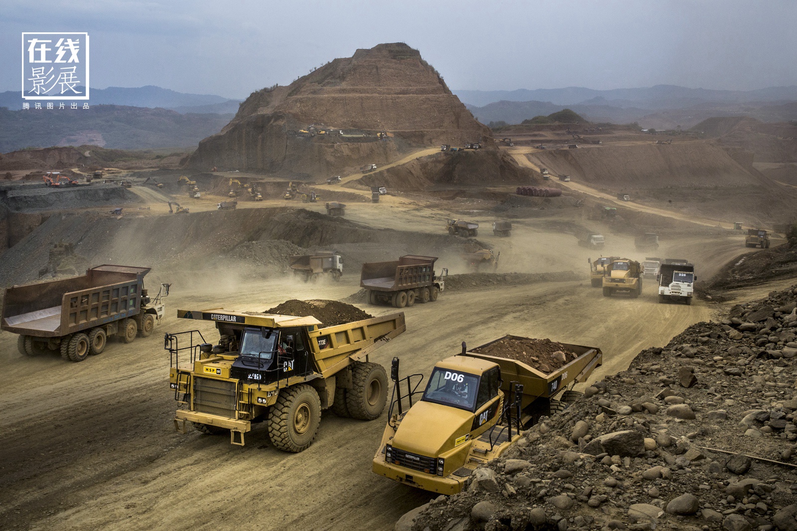 缅甸克钦邦帕敢市的“Kyaing国际”翡翠矿区,自倾卡车正在运送矿渣。据总部设在伦敦的非政府组织“全球见证(Global Witness)”2015年报告显示,缅甸前军事独裁者丹瑞的家族掌控着“Kyaing国际”。1994年克钦独立军与缅甸军之间的停火协议让大部分翡翠产区回到了缅甸政府的控制,自此缅甸开始了大规模开采翡翠的阶段,每天有数以百计的反铲挖土机、推土机和卡车日以继夜地工作着。那些曾经的小规模开采者现在已被认为是非法采矿者。