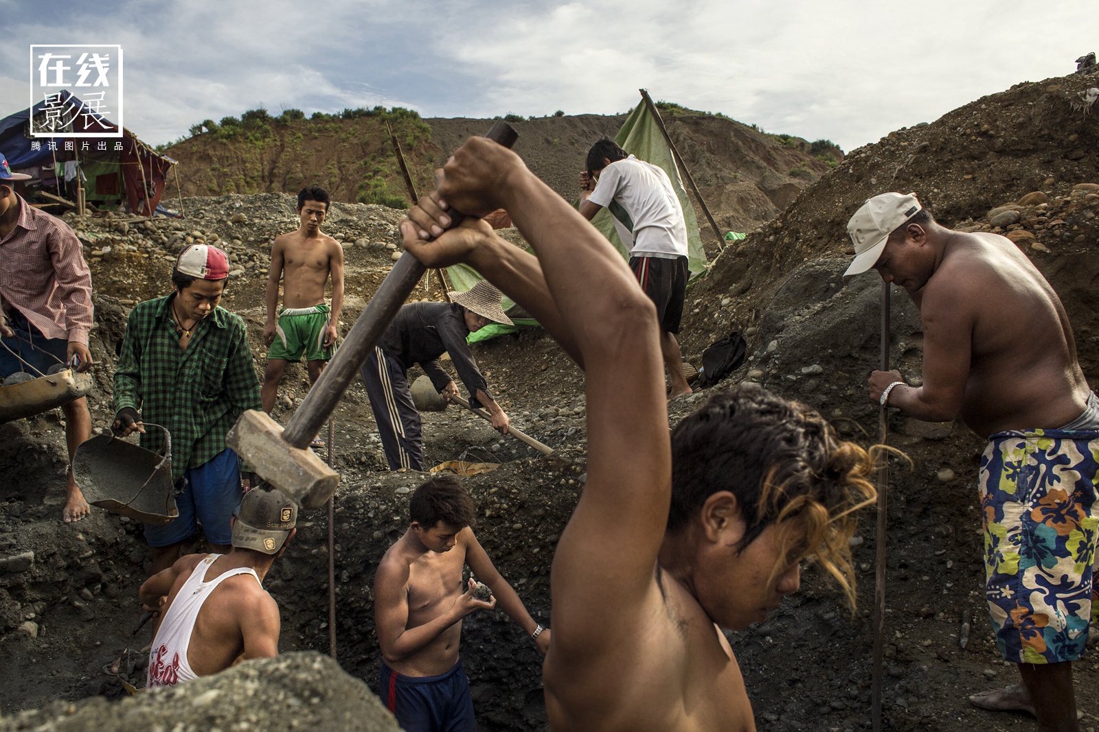 一帮非法矿工游泳过河以躲避矿山上警察和军队的追捕。军方官员说这些矿工违法工作并且会对附近一所学校造成危险,但矿工说那是军方勒索的借口,被抓住的人要缴纳高达5万缅元(280人民币)的罚金。
