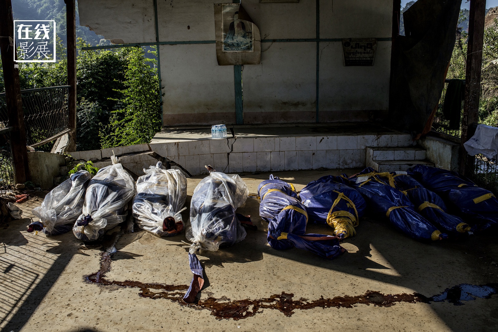 在一个毒品注射点旁,一名吸毒成瘾的矿工胳膊里插着一条针管。在帕敢,海洛因几乎可以公开销售并且价格很低,有时注射一支只需要两美元。毒品使用在翡翠开采业很常见。据当地人说,毒枭经常通过贿赂当地官员来保证自己的运营,现在已经有一些地方组织、宗教领袖和志愿者一起合作打击公开销售毒品的场所。
