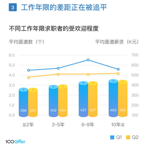 从 Q2 的面邀薪资上不难看出,大部分公司给出的平均面邀薪资集中在年薪 40 万以上,对应一般市场情况,至少是有过 2 年以上互联网经验的优质人才,一般能够至少对标 P6+ 至 P7 级别。这个现象从侧面展示出了市场供给相对平衡的情况下,有所成绩的优质才能够在这个阶段获取较好的机会。