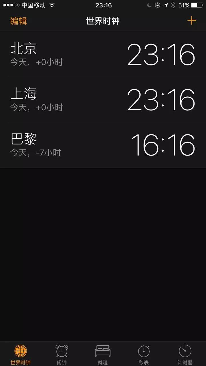2.在手机上添加世界时钟“巴黎”,下图以苹果手机为例