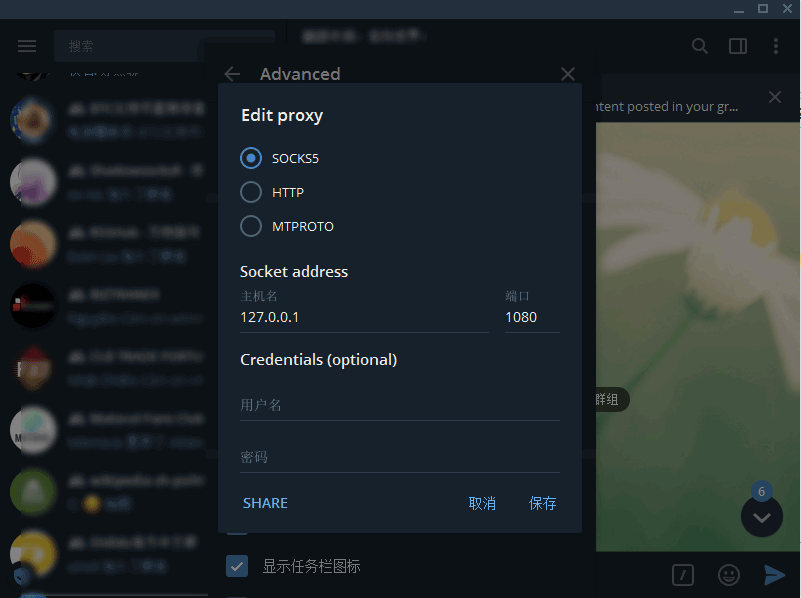 首先需要解决的问题就是无法注册问题,这个需要走代理,具体操作可以参考我的这篇文章:Telegram无法注册/登陆,代理设置方法