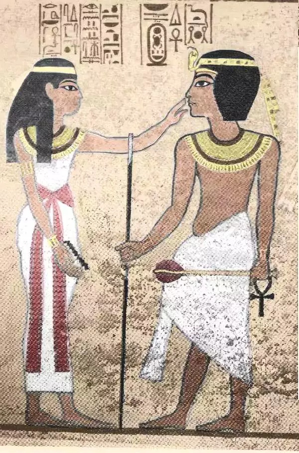 在法老图坦卡蒙的陵墓墙上,就有这么副保存完好的“抠鼻屎”壁画。壁画中画着的是,古埃及的天空之神努特(Nut),小心翼翼地为年轻的法老抠鼻屎的场景。