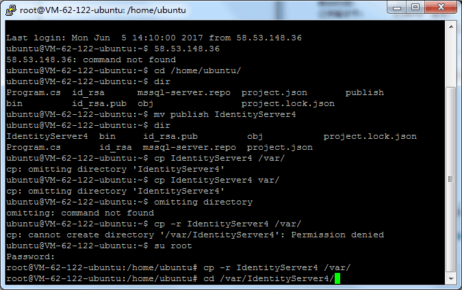 切换到home目录下,之后把publish文件复制到 /var/目录下,命令如下: