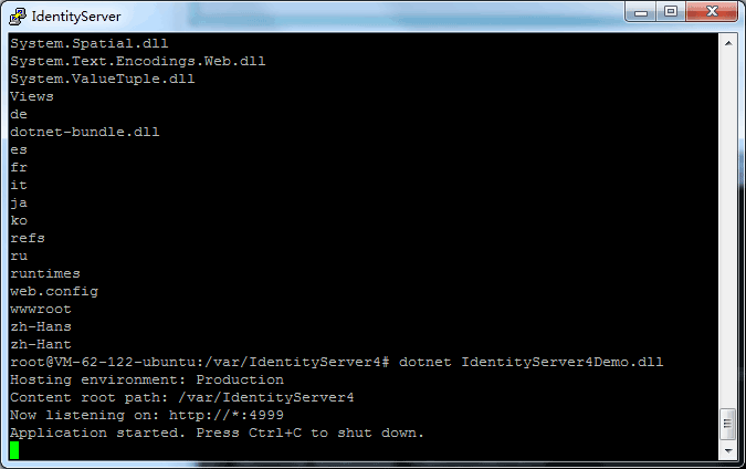 之后定位到publish目录下,执行dotnet xxxxx.dll,成功运行程序。