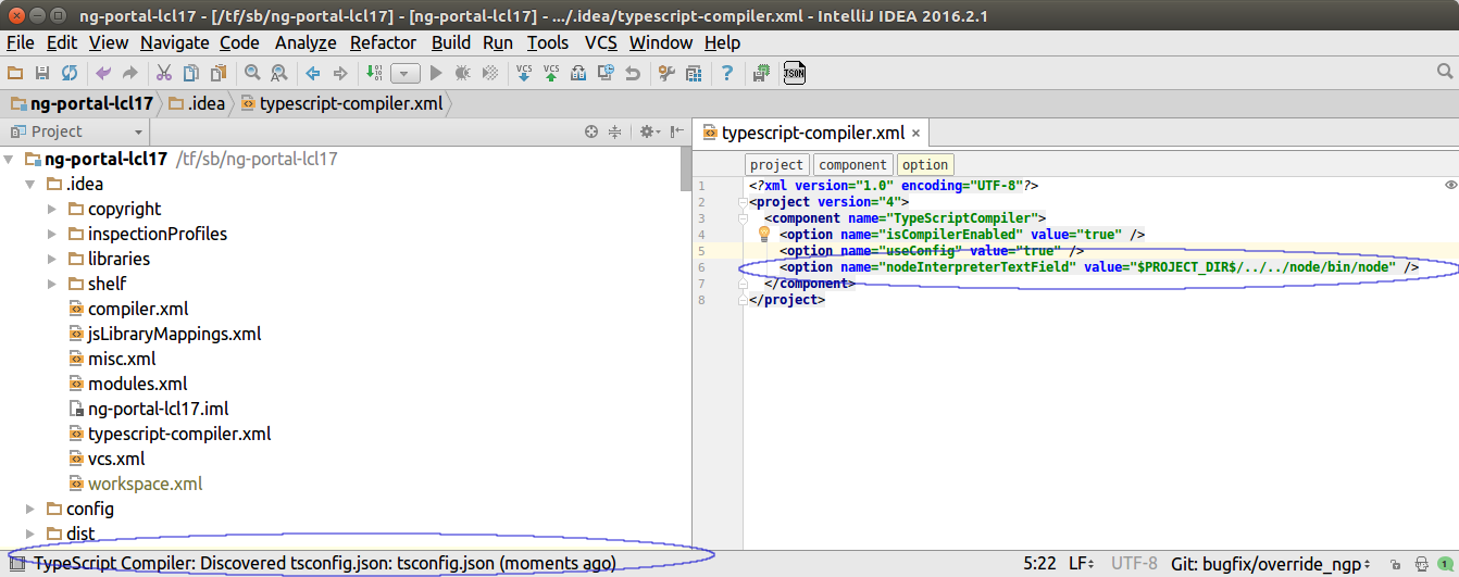 To fix this problem, directly edit the TypeScript configuration within the project's .idea directory. Within the project structure, navigate to your .idea directory then locate and open file typescript-compiler.xml like below.