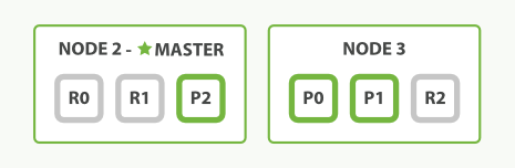 副本分片(Replica shard):每个主分片可以有一个或者多个副本,个数是用户自己配置的。ES会尽量将同一索引的不同分片分布到不同的节点上,提高容错性。对一个索引,只要不是所有shards所在的机器都挂了,就还能用。主、副本、节点的概念如下图: