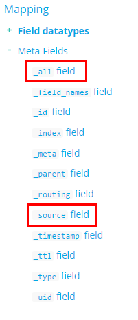 2)_all:一个“伪”字段,用来实现模糊的全文索引。可以这样理解:在建索引的时候,把所有字段拼成一个字符串,然后对这个“大”字段进行切词,建倒排,然后这个字段就被丢弃了,没有真正落入磁盘。当全文检索时,如果没有指明查询的域,比如标题、正文(这种是很常见的),就从这个大的倒排中拉取文档拉链。可以想象,一些标记或值类型的字段,如日期、得分,这种在全文检索时是没意义的,就可以不包含在_all内,而文本域,如title、doc,就包含在_all之中。这些都是在建mapping时可以、而且最好指定的。