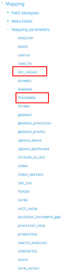 这里要详细介绍的,是上图中红框标出的,我们创建mapping时实际用到的比较关键的两个内置类型,和两个mapping参数。这几个都会直接影响最后索引访问的性能: