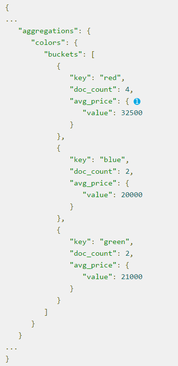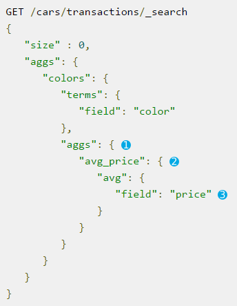 指标聚合主要指常规的集合数学统计类运算,如官方guide的这个例子:找到交易的所有红色的车,然后求它们的平均价格:
