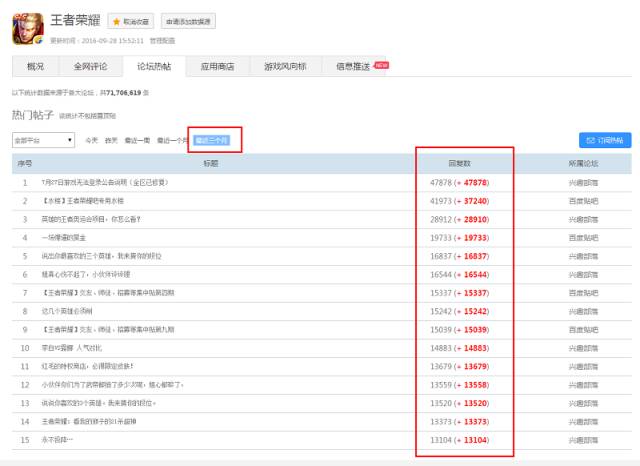 上面是简单的例子。在我们的WeTest舆情中,有论坛热帖这样一个功能,即,实时统计某个数据源中(如百度贴吧),某个论坛里(如王者荣耀吧),一段时间内(如3个月),回复数最多的TopN个帖子。