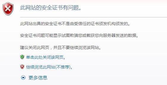 其实客户端,局域网的风险也很大,恶意插件,木马可以做很多事情,你使用的路由器,DNS 也比较脆弱。如果某个大型网站被标记为了红色,那你就更要小心了 (当然也可能是某个猴子忘记了续费替换证书,导致证书过期了),你有可能遭受了 ssl 劫持 (中间人攻击的一种),特别是遇到如下图提示的时候(访问一些自己签名的站点也会有类似的提示)。中间人攻击还有其他种类的,比如代理你的通信让你退化 http, 还可以利用注入根证书,可以让你浏览器还是绿色的标记,就问你怕不怕?