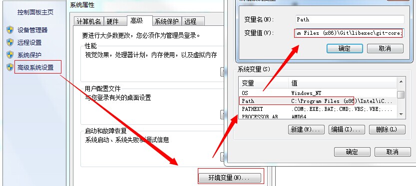要想在cmd窗口运行git,只需要在“变量环境”添加 git 的 bin 目录地址和 git-core 目录地址就可以了,如:
