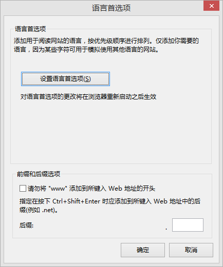 各种浏览器都可以设置希望使用的语言,在 IE 中,选择设置,弹出对话框之后,可以设置语言首选项。