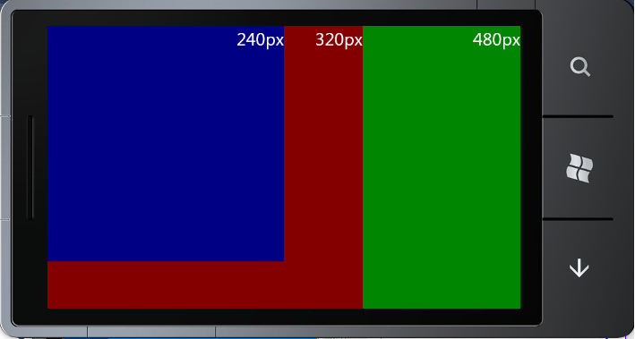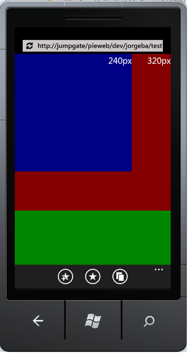在 Windows Phone 7 浏览器内部,在竖向布局的时候,视口宽度为 320px, 横向布局的时候,宽度为 480px。