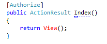 然后同样地,应用Authorize属性到我们的Index Action上。