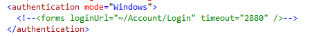 和Forms认证一样,首先我们需要更改一下web.config中的authentication结点。