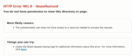 如果使用IIS Express的话,我们需要更改配置信息来启用Windows认证。否则我们就会得到以下错误页面。